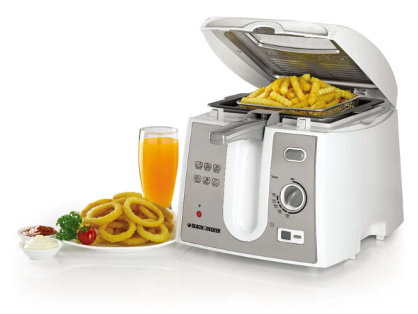 2 liter oil tank capacity Digital timer Durable stainless steel basket Non-stick removable bowl for easy cleaning Variable temperature settings to suit different cooking needs Removable multi layer filter reduces unwanted frying smells Frying basket can be raised and lowered with the lid closed, to prevent oil splashes