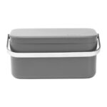Brabantia’s small organic waste bin is made of plastic and has stainless steel handles. Ideal for small quantities of organic waste.