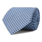 This geometric tie was hand-woven from silk fabric using a seven-fold technique. Its medium width allows for easy knotting without tangling.