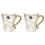 This range of hand-finished Elia mugs combine vibrant Green with bright Gold forming some of the most eye-catching and classical examples of Elia Fine Bone China available. Light in the hand and very strong, Jewel is finished in a smooth, white glaze. These come in 2-piece gift-box sets.