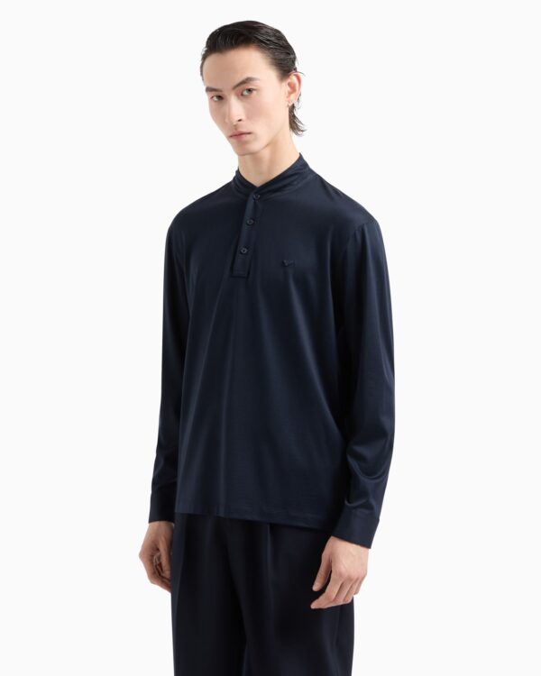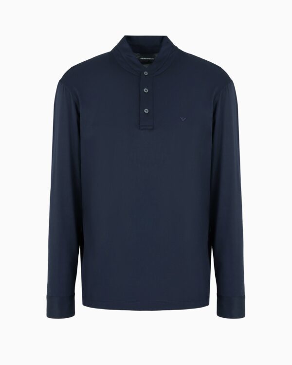 Polo shirt featuring a Henley collar and matching embroidered micro eagle on the chest. Made from a jersey in a blend of cotton and Lyocell, a semi-synthetic fibre that has an exceptionally low impact on the environment. It is derived from eucalyptus trees and is renowned for being moisture-wicking, durable, breathable and wrinkle-proof.
