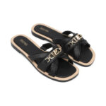 MK TIFFANIE BLACK FAUX RAFFIA FLAT SLIDE