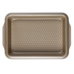 - Finished in a beautiful gold shimmer, this stylish deep baking tray adds a touch of sophistication and glamour to any kitchen.