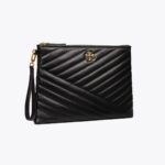 TORY BURCH KIRA CHEVRON SMALL BLACK POUCH